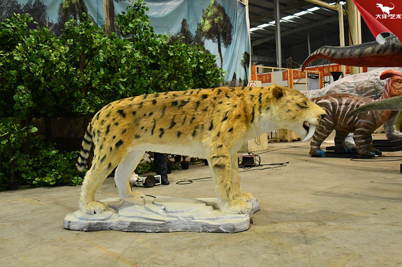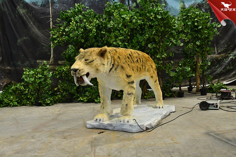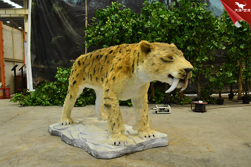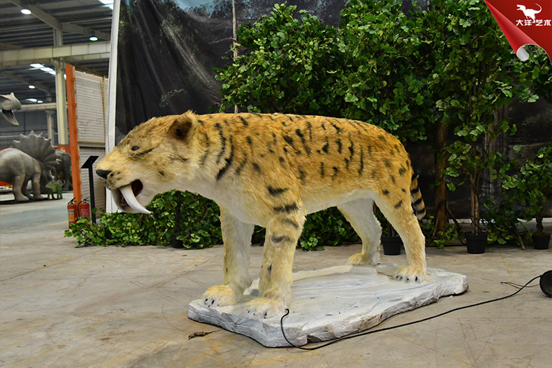 仿真劍齒虎,仿真動物,使用場景:科普展覽、商業(yè)、公園布景 、博物館、游樂園、供觀眾拍照。