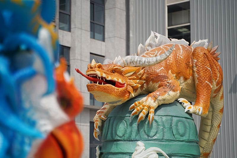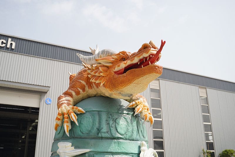 由大洋藝術(shù)制作的“雙龍戲珠”仿真機(jī)模展品,專(zhuān)為景區(qū)和游樂(lè)園展覽設(shè)計(jì),展現(xiàn)了高超的藝術(shù)制作水平和深厚的文化內(nèi)涵。此款中國(guó)龍仿真機(jī)模通過(guò)精細(xì)的工藝和巧妙的設(shè)計(jì),將傳統(tǒng)“雙龍戲珠”的圖案以立體的形式呈現(xiàn)出來(lái),不僅栩栩如生,而且富有動(dòng)態(tài)感。當(dāng)機(jī)模啟動(dòng)時(shí),雙龍仿佛活了一般,搖頭擺尾,戲耍著中間的寶珠,給人一種