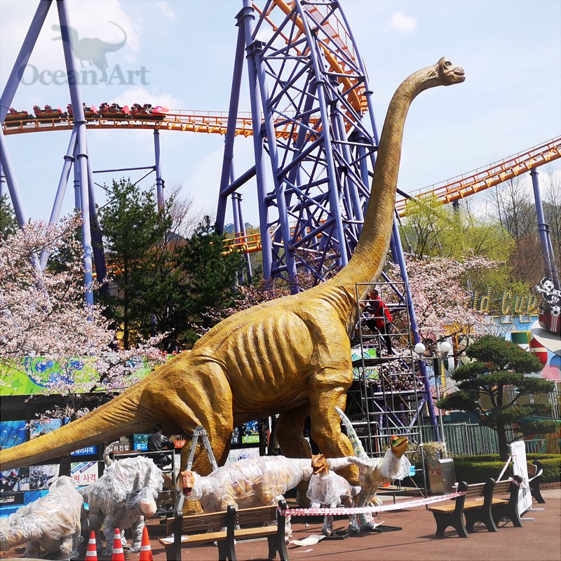 我司有幸與首爾樂園合作,在鐘師傅的指導下,4月17日完成樂園內(nèi)仿真恐龍安裝工作。