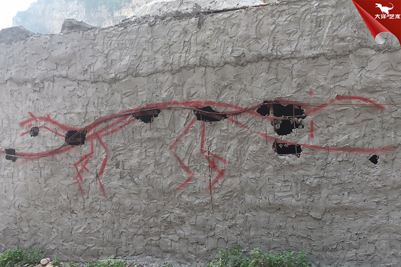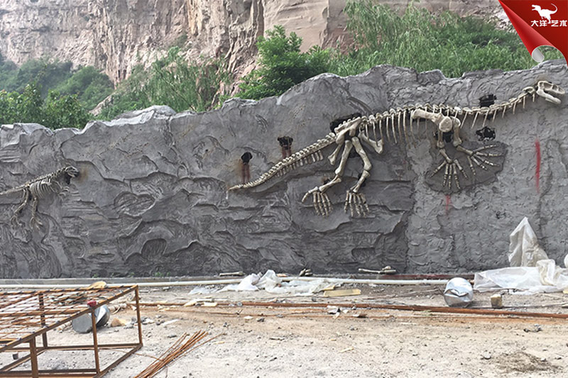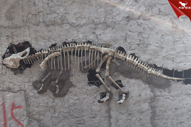 仿真恐龍化石,嵌入在墻壁里,制作成剛挖掘出的恐龍化石骨架作為展示,常用于景區(qū)、恐龍公園和恐龍谷等場所,作為給游客最直觀地展示恐龍化石是怎么發(fā)掘的!