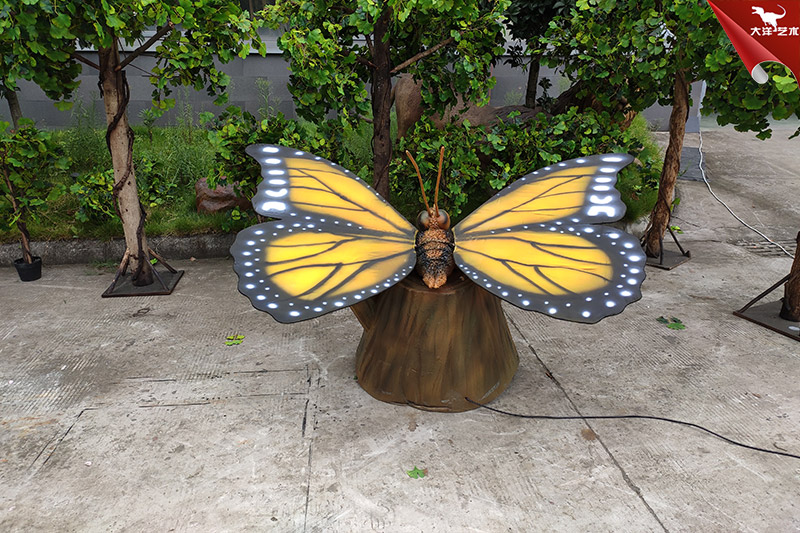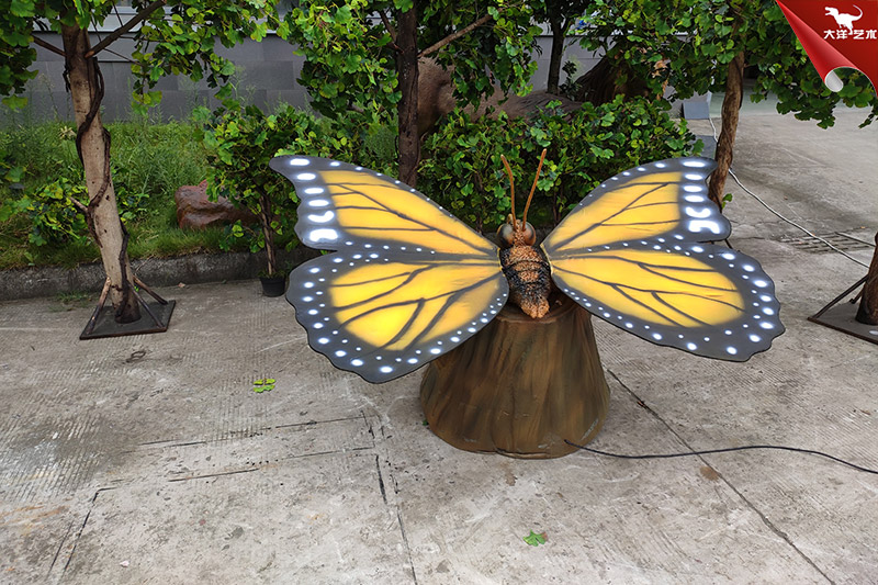 仿真蝴蝶是自貢大洋藝術(shù)有限責(zé)任公司-仿真恐龍制作工廠生產(chǎn)制作的。改仿真展品寬2米高1米左右,采用仿真恐龍技術(shù)制作,側(cè)才鮮艷、整體形象逼真。配合翅膀扇動(dòng)可發(fā)出蝴蝶飛翔的聲音。該展品主要用于動(dòng)物主題公園、商業(yè)活動(dòng)展覽、游樂場等場所!