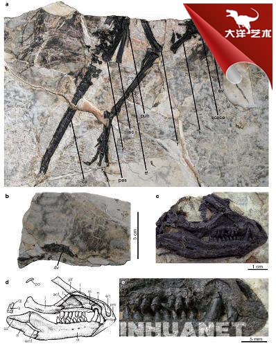 據(jù)論文的作者之一、中科院古脊椎動物與古人類研究所研究員徐星介紹,天宇龍發(fā)現(xiàn)于遼寧省西部一億多年前的地層中,屬恐龍兩大類之一——鳥臀類中的異齒龍類,其最大特點是有一副匕首狀的獠牙和細(xì)管狀的類似羽毛的皮膚衍生物。異齒龍是一類體型較小,行動敏捷的恐龍,已知的化石記錄很少,主要發(fā)現(xiàn)于南非約兩億年前的侏羅紀(jì)早期,而天宇龍的發(fā)現(xiàn)將這類恐龍的分布擴展至亞洲。