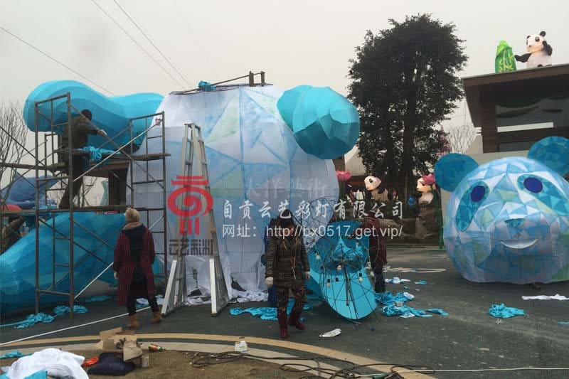在項目執(zhí)行中我們總體上來說進(jìn)展比較順利,但在畢竟項目規(guī)模較大,涉及到的工人眾多,所以在整體過程中還是有一些小問題,比如本次項目涉及到高空安裝工作,高空安裝是個風(fēng)險性較大的工種,我們安裝的擺件最高有三四十米,最長也有四五十米,因此安全是整個工作中重中之重,為了做到確保無誤,自貢燈貿(mào)股份有限公司現(xiàn)場管理人員及工人、美工在安裝之前做了詳細(xì)的分工,通過多方努力,多個大件都安裝順利,亮燈順利。在項目執(zhí)行中出現(xiàn)些問題也是在所難免的,在整個過程中我們及時與相關(guān)設(shè)計師溝通交流,如有變化及改動我們可以第一時間接到通知,以避免工作的重復(fù)和材料及人工的浪費。對于彩燈行業(yè)來說造型和焊接工作是至關(guān)重要的一部分,如果造型和焊接環(huán)節(jié)出現(xiàn)問題,后面的裱糊工作多半會返工,所以我們在整個制作工程中更加注重各個部門和工種之間的溝通和交流,從而做到效率最大化。