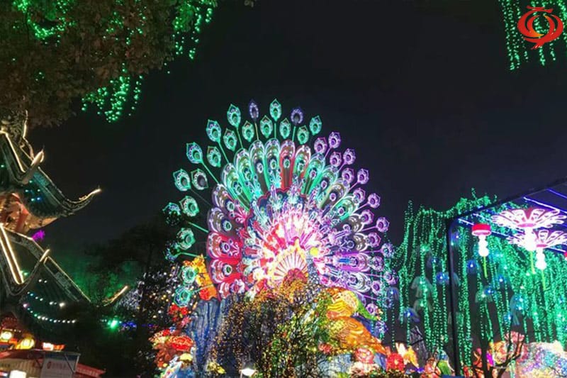 孔雀開屏花燈采用鋼架結構、立體造型、內光源、部分噴繪、美術處理。采用傳統(tǒng)花燈制作工藝及現(xiàn)在新工藝、現(xiàn)代新型光源材料有機的結合,完美體現(xiàn)出形、色、聲、光、動、燈會的五大主體持色,集觀賞性、游樂性、參以性一體,它同樣生動有趣光彩奪目。它承載花燈藝術全新的裝扮以新的造型出現(xiàn),特別適用于節(jié)日添彩、狂歡造勢和企業(yè)宣傳、景區(qū)景點夜景燈飾、景區(qū)景點夜景燈光燈飾標志性建筑。