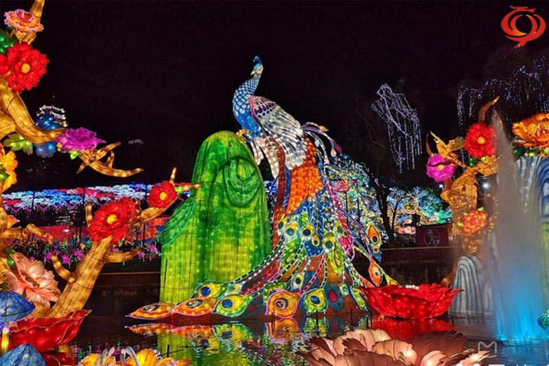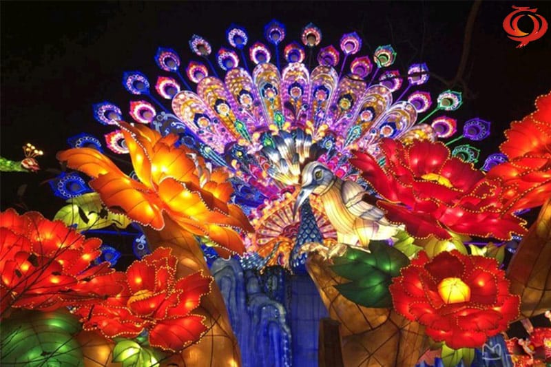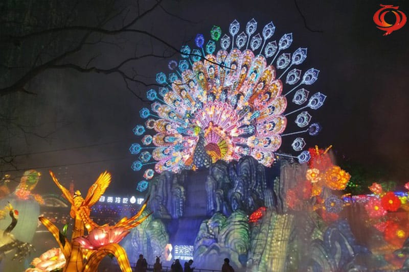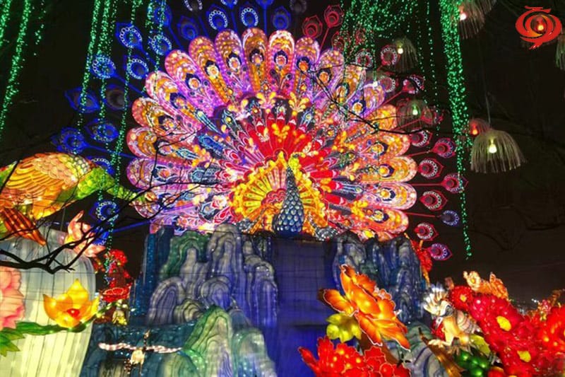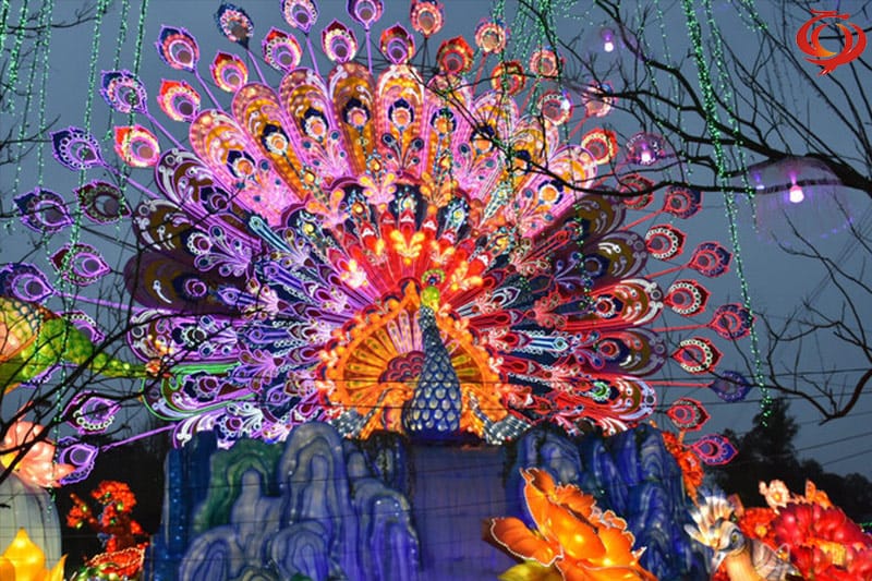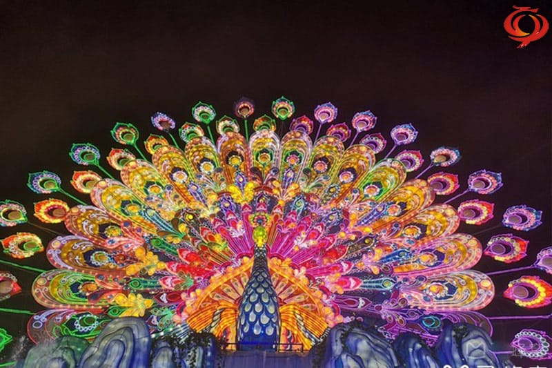 孔雀開屏主題元素花燈