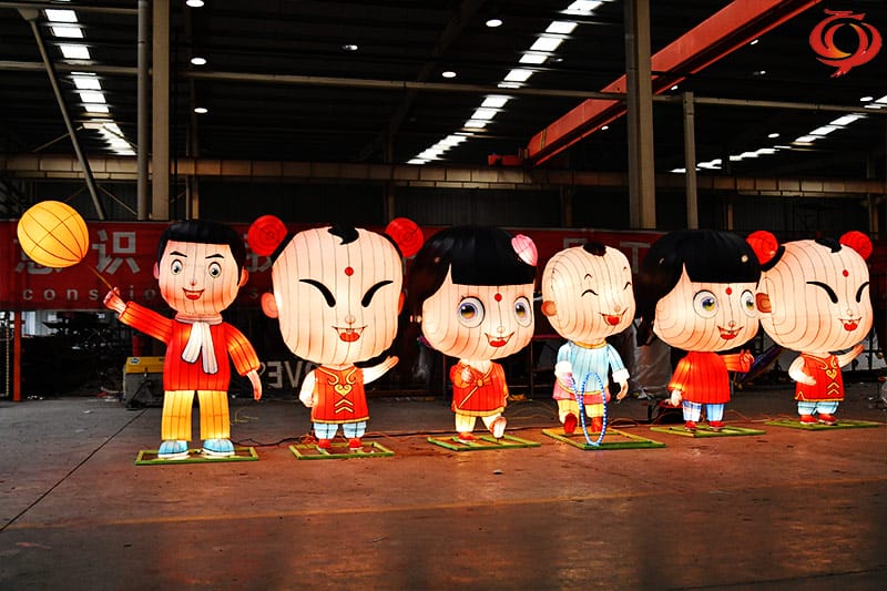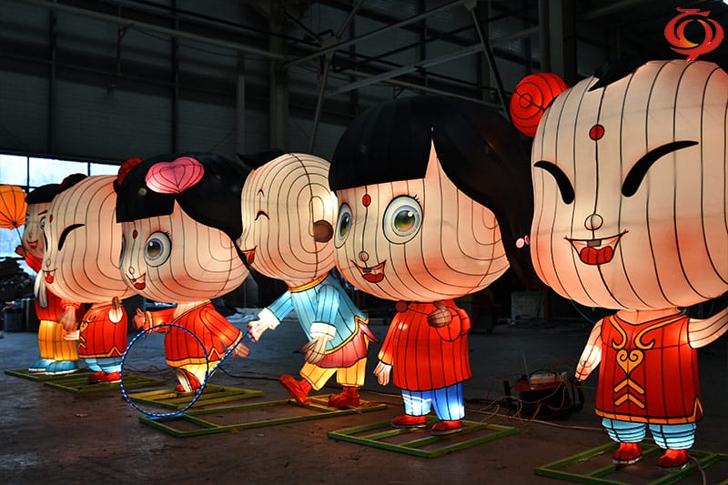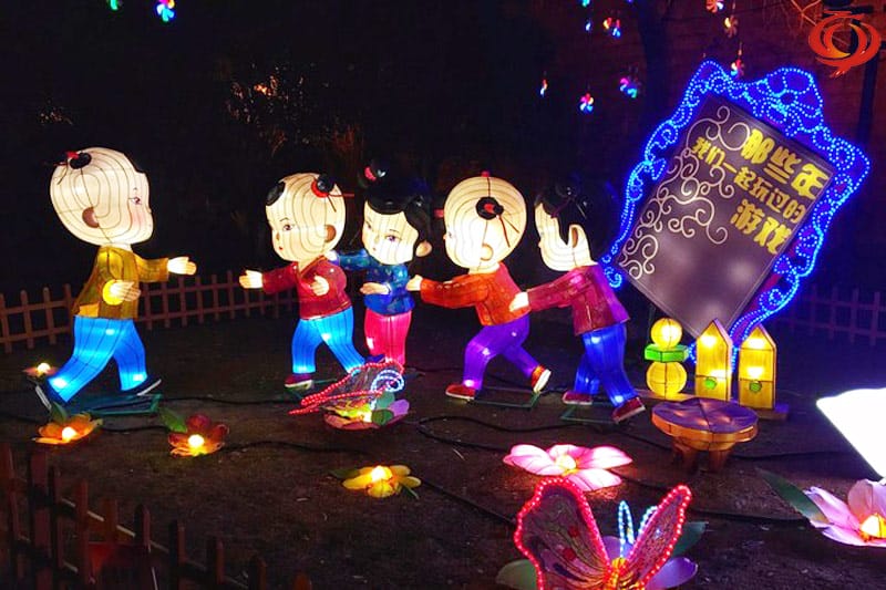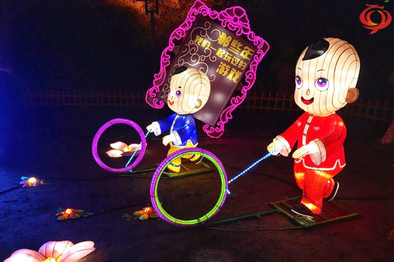 兒童主題花燈,該組花燈主題為童趣,講述了80、90后小時候玩過的一些游戲,例如滾鐵環(huán)、丟沙包、捉迷藏等等,現(xiàn)在很多小孩可能見都沒見過這種游戲了,相信這組燈能夠勾起很多人小時候美好的回憶。